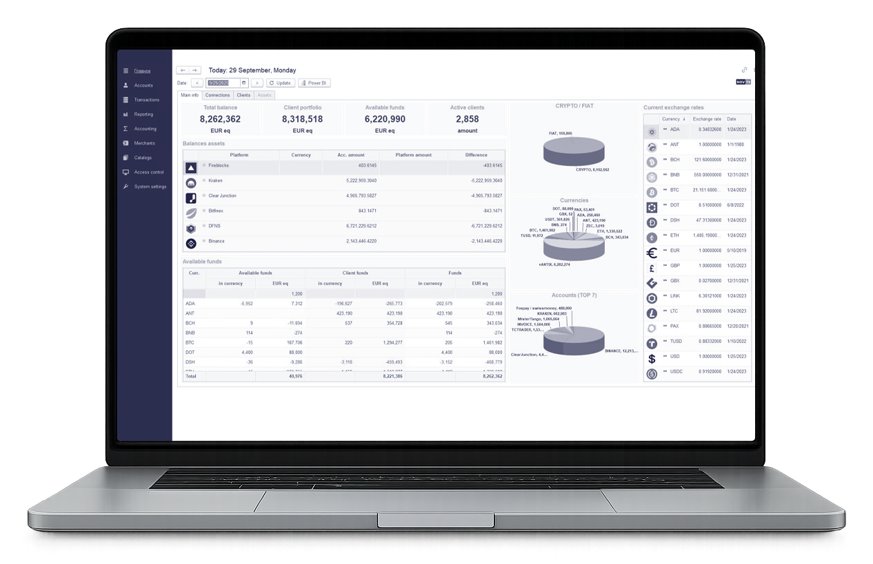 Ensure accuracy and credibility. Every crypto transaction automatically generates accounting entries in line with International Financial Reporting Standards (IFRS).